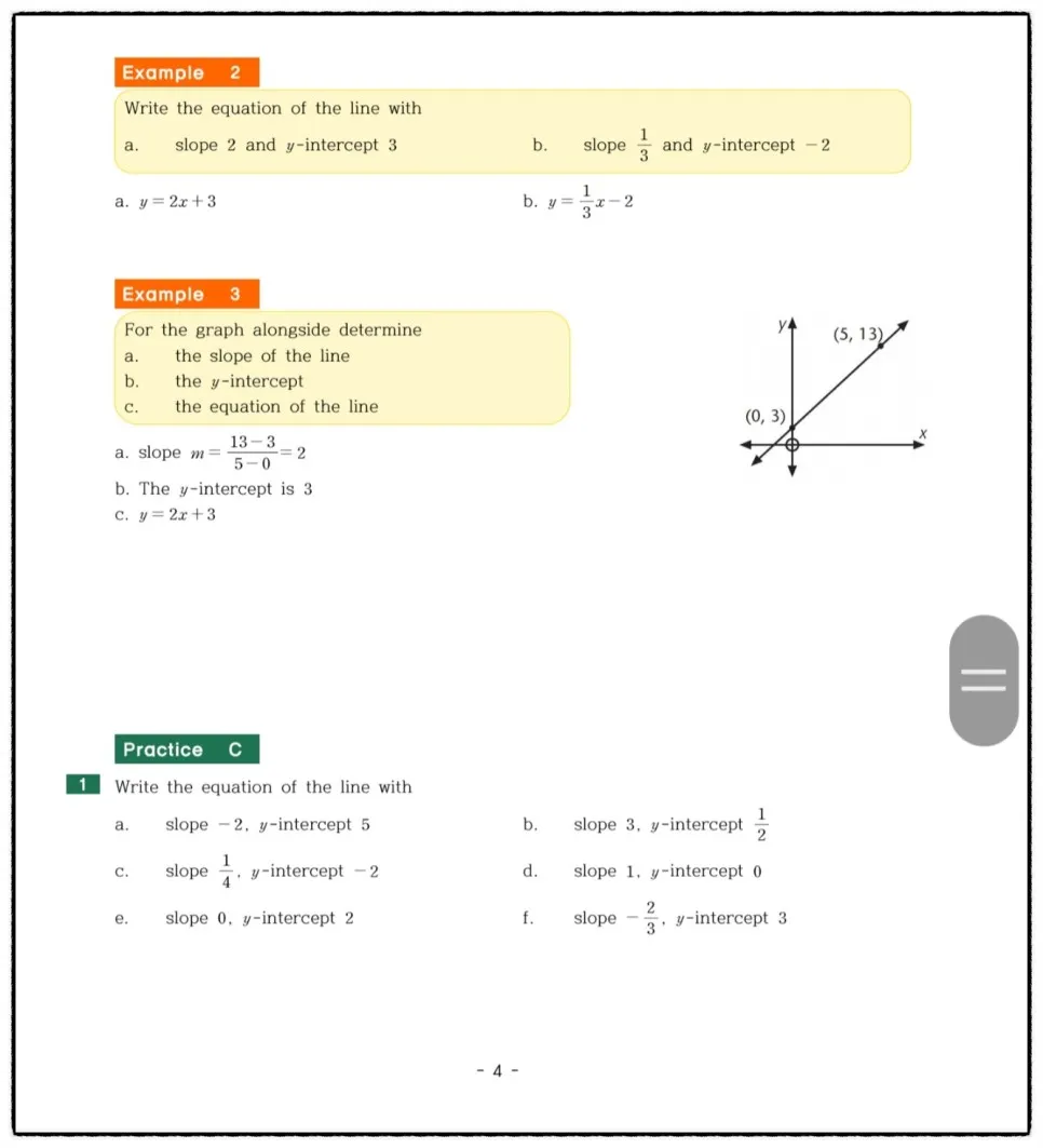 함수의 그래프 기울기, x 절편, y절편에 대한