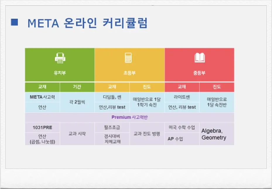 초등/중등 진도까지 한국 교재+국제 학교 수학 커리큘럼을 병행합니다.