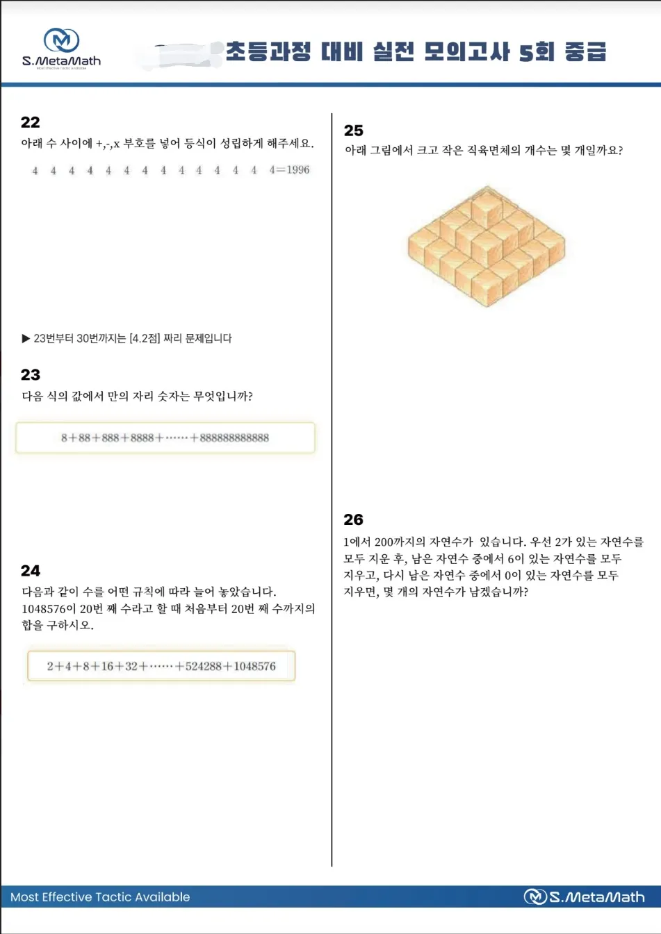 설명회 1회+ 온라인 홍보 + 모의고사 제공