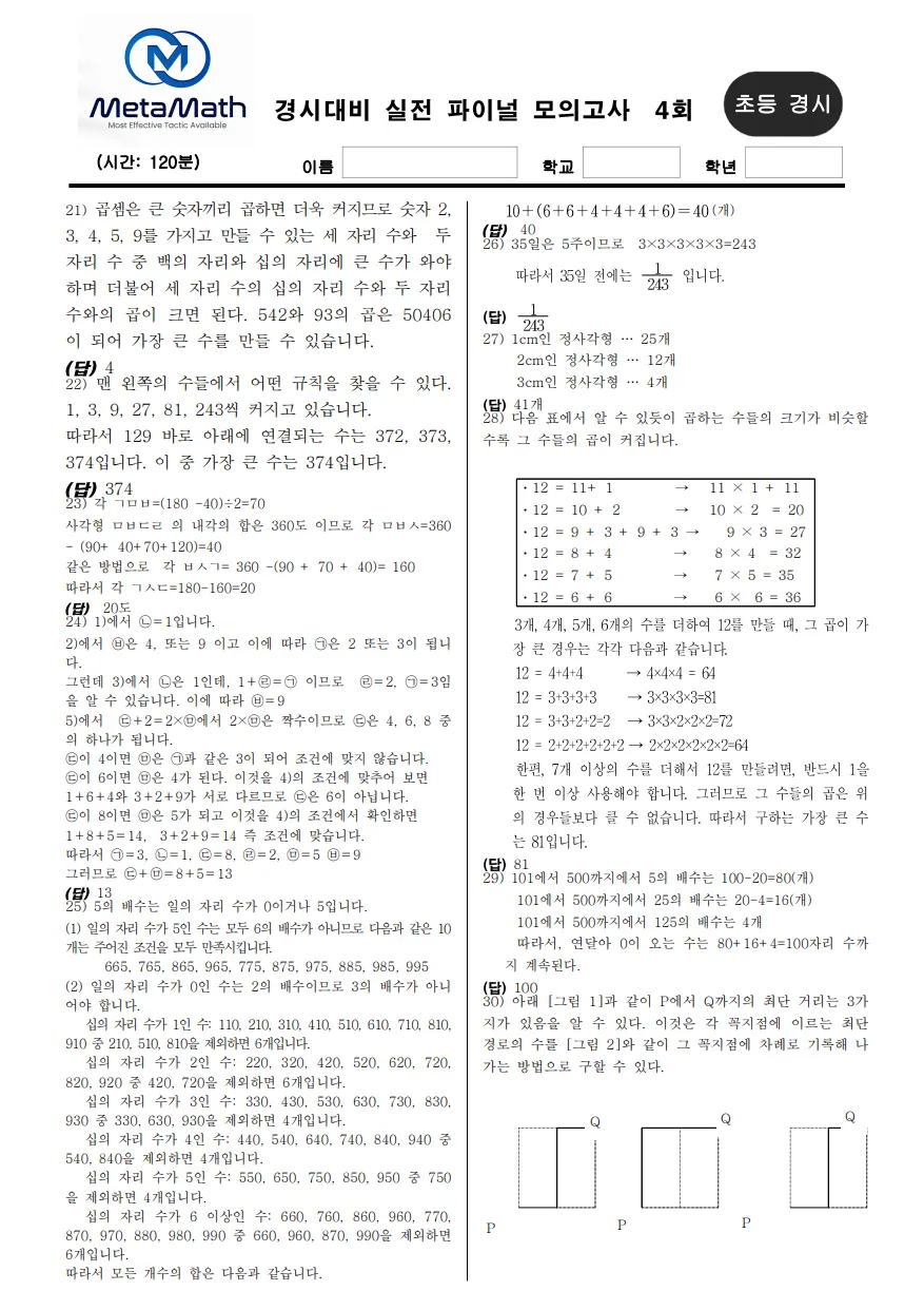 기하편 : 공간지각, 평면 도형 필살기 (초1~초3) / 대수편